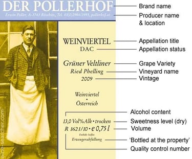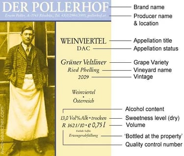 Wein (vien): es una categoría genérica que era conocida como vino de mesa. Puede mencionar tanto añada como varietal, pero no puede mencionar ninguna zona, por lo que sólo nombrar el país “Österreich”.