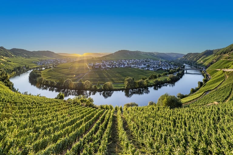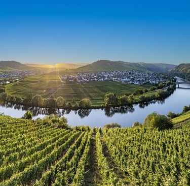 Bernkastel: El corazón de Mosel, hogar de algunos de los viñedos más prestigiosos, como Wehlener Sonnenuhr y Piesporter Goldtröpfchen. Conocida por sus Rieslings elegantes, con gran frescura y mineralidad.