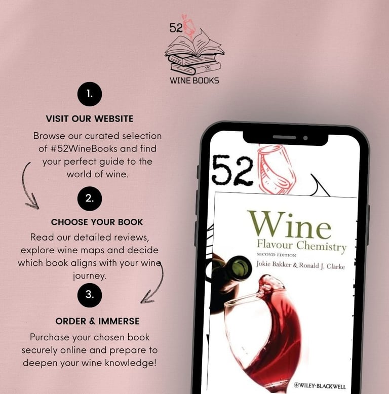 ¡Saludos, apasionados del vino! En nuestra serie #52WineBooks, esta semana les presento una joya literaria indispensable para quienes desean profundizar en la química del vino: "Wine Flavour Chemistry" de RJ Clarke y J Bakker.